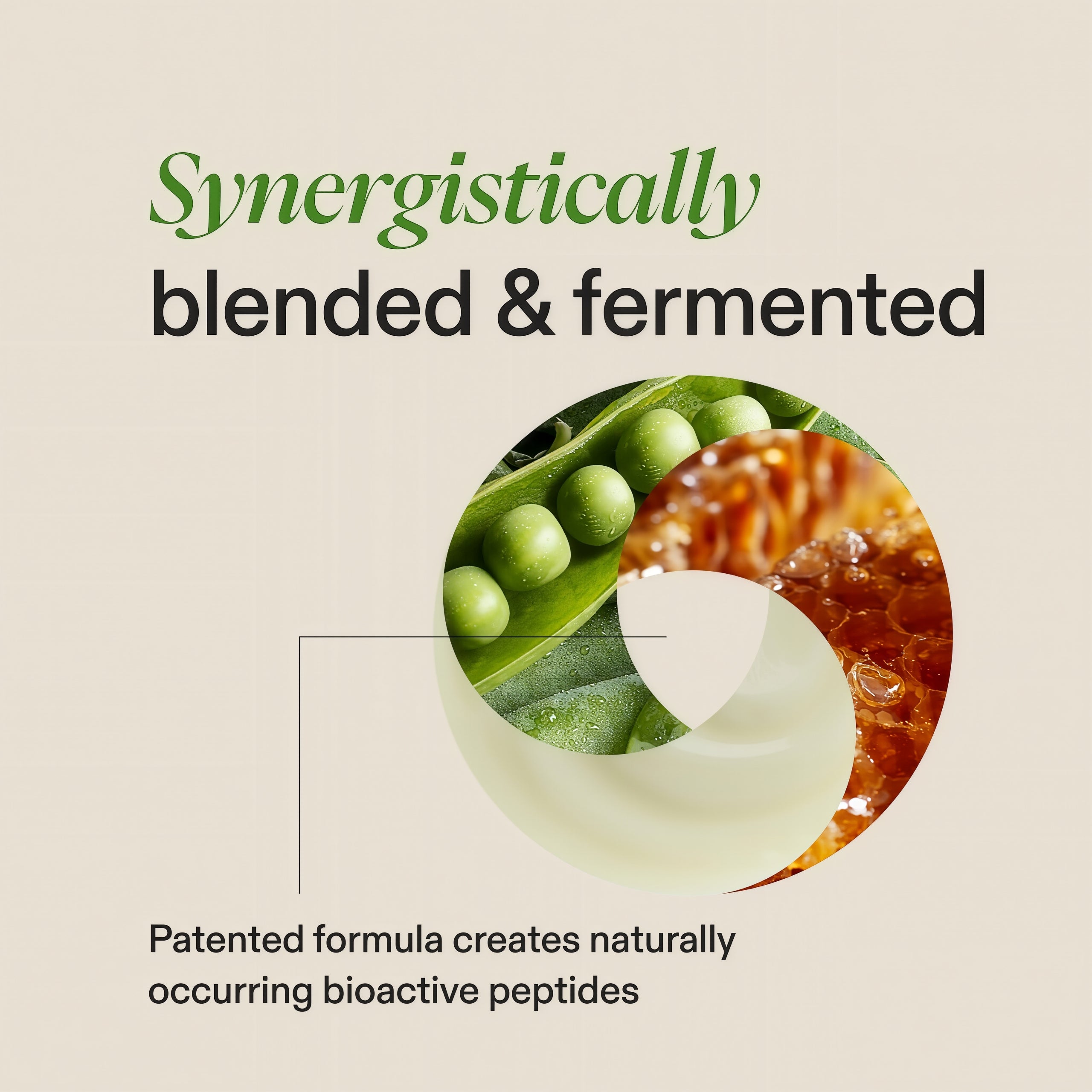 These ingredients are expertly blended and fermented with a patented enzymatic process that creates naturally occurring anti-aging bioactive peptides.